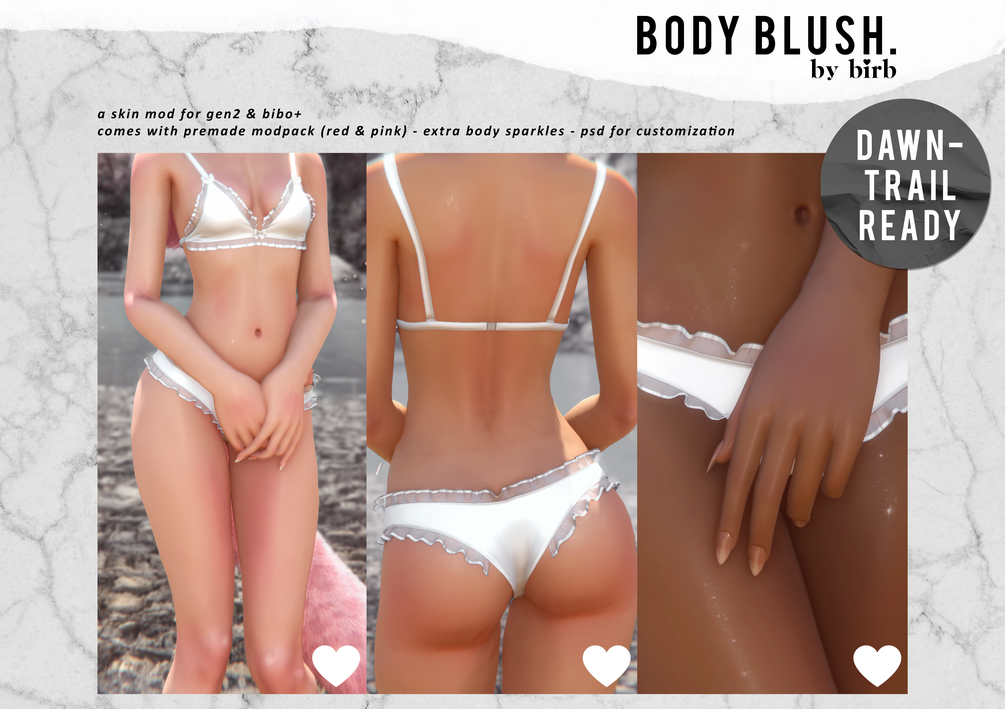 i tried to pick colors & opacity that work across all skintones, but ultimatively it boils down to taste - feel free to tweak the textures to work with your skintone. ♥